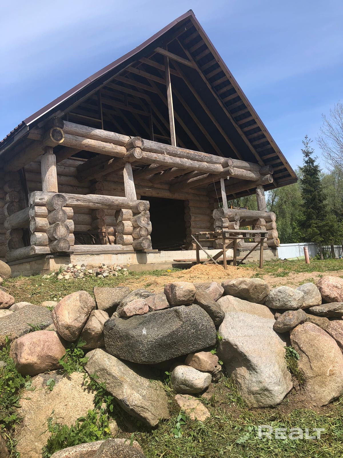 На участке дом из дерева (9*12) – сруб (диаметр 350 мм) под крышей (ондулин), баня, залит ленточный фундамент под гостевой домик, колодец.