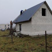 Продам участок 14,77 сотки с блочным компактным двухуровневым домом (49% гот.), на свайно-ростверковом фундаменте. Внутри-засыпан песком в уровень на монолитную плиту –под черновую заливку бетоном (срок усадки прошел). 28 минут езды от МКАД. В доме запланированы высокие потолок, оригинальное решение большого холла, домашней бани. Газ и водопровод -у границы участка. Проект на электричество 220/380 -сделан. Есть металический гараж для хранения инвентаря. Есть запас стройматериалов, фбс, песок.