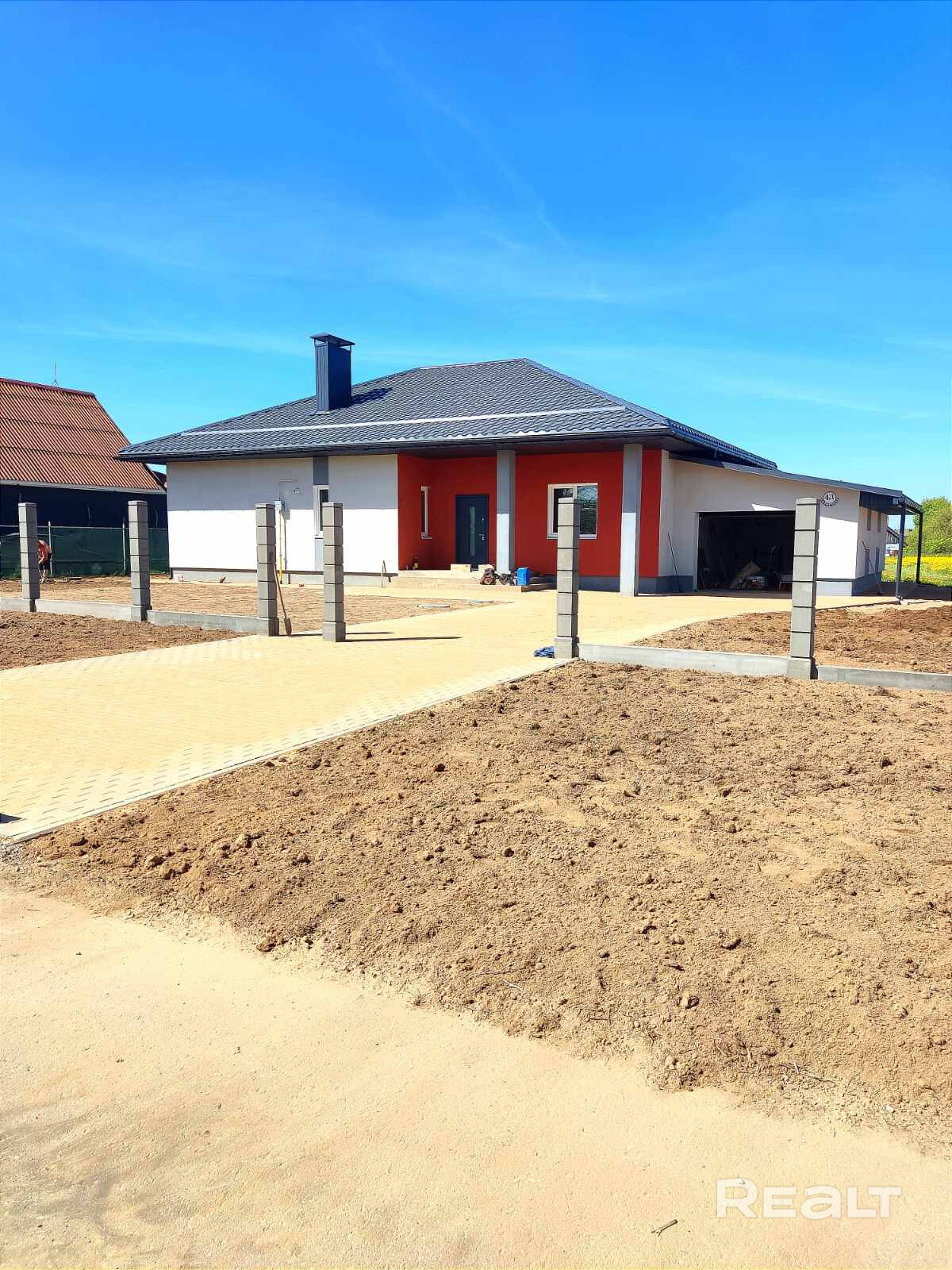 водосточка. Выложен заезд в гараж, мощение для парковочных мест, очень