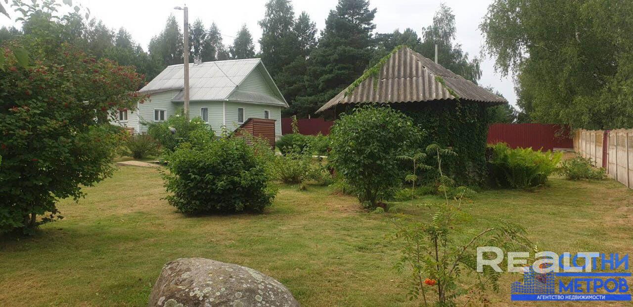 Участок полностью огорожен, ухожен, выложены дорожки, посажены декоративные кустарники, деревья. Также есть черешня, вишни, кусты смородины, небольшой огород.