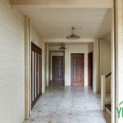 На первом этаже расположен коридор, просторный холл, гостевая комната, сан.узел, 2-е кладовые (одна из которых 13,6 кв.м с выводами под парную с душем и комнатой отдыха), топочная, просторная столовая совмещенная с кухней, веранда и терраса. На мансардном этаже холл, сан.узел, гардеробная, четыре спальни.