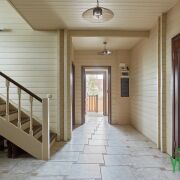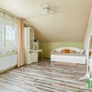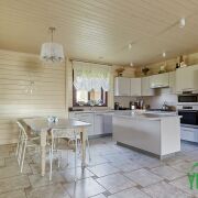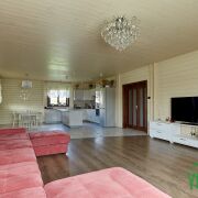 Дом из профилированного бруса создает атмосферу умиротворения и гармонии с природой. Кухня совмещена с гостиной, из которой есть возможность выхода на крытую веранду и террасу под навесом. По дому разведены газ, электричество и оптоволокно. Дом полностью оборудован для круглогодичного проживания.