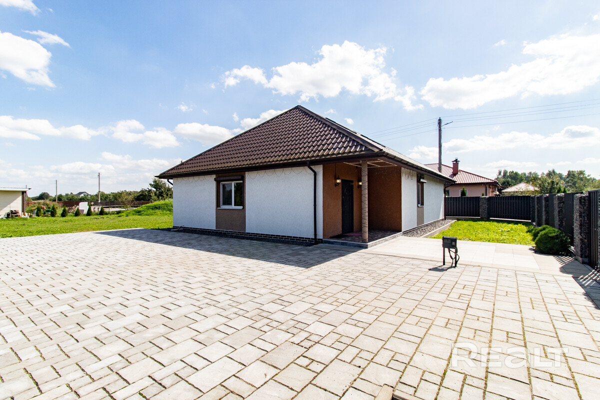 Шикарный новый коттедж для постоянного проживания и отдыха с баней, террасой, бассейном, ремонтом, мебелью и бытовой техникой в садовом товариществе Людмила, Смолевичский район, Московское направление, 23 км от Минска, рядом станция электрички Загорье (5 минут пешком).