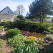 -сад с плодовыми деревьями (яблони, груши, абрикосы, персики, сливы, вишни), плодово - ягодные кустарники (жимолость, черная и красная смородина, крыжовник зеленый и темный, голубика, клубника, земляника), декоративные кустарники и хвойники.