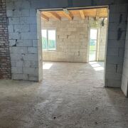 Подземная часть – бетонные блоки ФБС с гидроизоляцией, межэтажное перекрытие между подвальным помещением и первым этажом- железобетонное, между 1-ым этажом и мансардным – деревянное, стены – блочные, перегородки – кирпичные, блочные, кровля -металлочерепица, двери – металлические, роллет, окна – ПВХ. К участку подведено электричество, за домом – автономная канализация (два септика). Планируемое отопление электрическое, либо твёрдотопливное. Газ не предусмотрен. Вода планировалась под скважину.