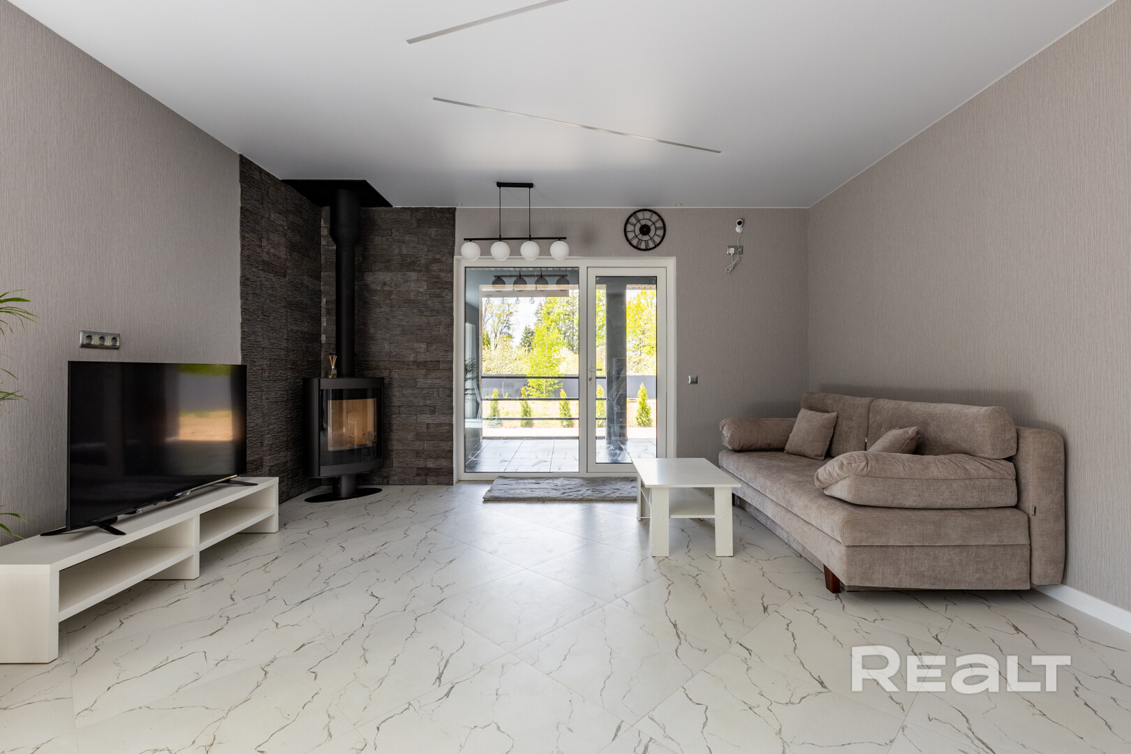 Все коммуникации в доме: электричество разведено (новая медная проводка, высокая выделенная мощность, льготный тариф 10 коп за 1кВт), вода скважина, подогрев воды – бойлер, канализация выведена на улицу (состоит из 2-х колодцев). Электрокотел обеспечивает регулируемую систему отопления при помощи теплых полов по всей площади дома. Фасад утеплён, отделан декоративной штукатуркой, окрашен качественной краской. Участок оборудован системой видеонаблюдения, установлен видеодомофон, хороший интернет обеспечивает усилитель сигнала, есть wi-fi. Окна ПВХ. Высокие потолки и большие окна в пол наполняют дом светом. Из кухни-гостиной предусмотрен удобный выход на террасу к зоне отдыха. Это позволит проводить максимально много времени на свежем воздухе. Утром можно выпить чашку крепкого кофе или чая под пение птиц, а вечером, обсуждая проведённый день, готовить на барбекю и наслаждаться закатом.