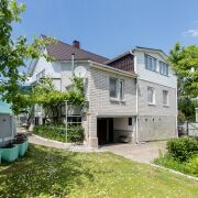 Двухуровневый дом с цокольным этажом общей площадью 281 кв.м, два жилых этажа площадью 184 кв.м. На 1-м отапливаемом этаже четыре мебелированные небольшие спальни, гостиная, санузел с душевой и теплым полом под плитку, а также просторная светлая с большими окнами кухня, на которой кроме кухонной мебели есть электроплита с духовкой, холодильник, обеденный стол и диванчик.
