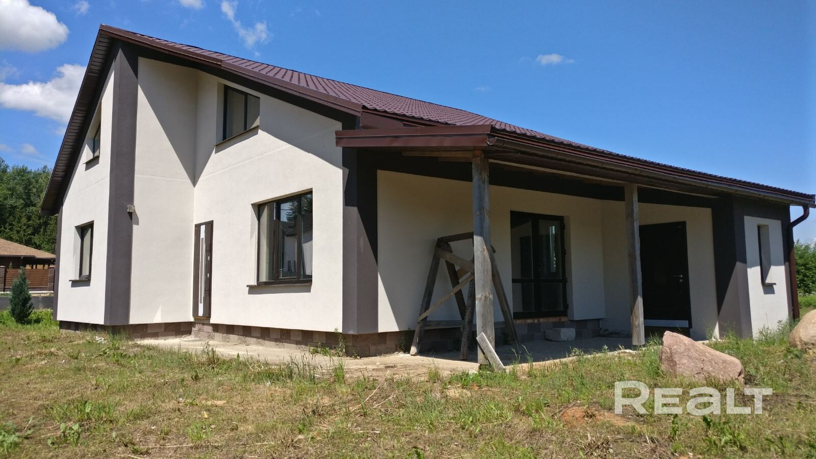 Коттедж площадью 175 кв.м. из газосиликатного блока- утеплен базальтовыми плитами и оштукатурен.