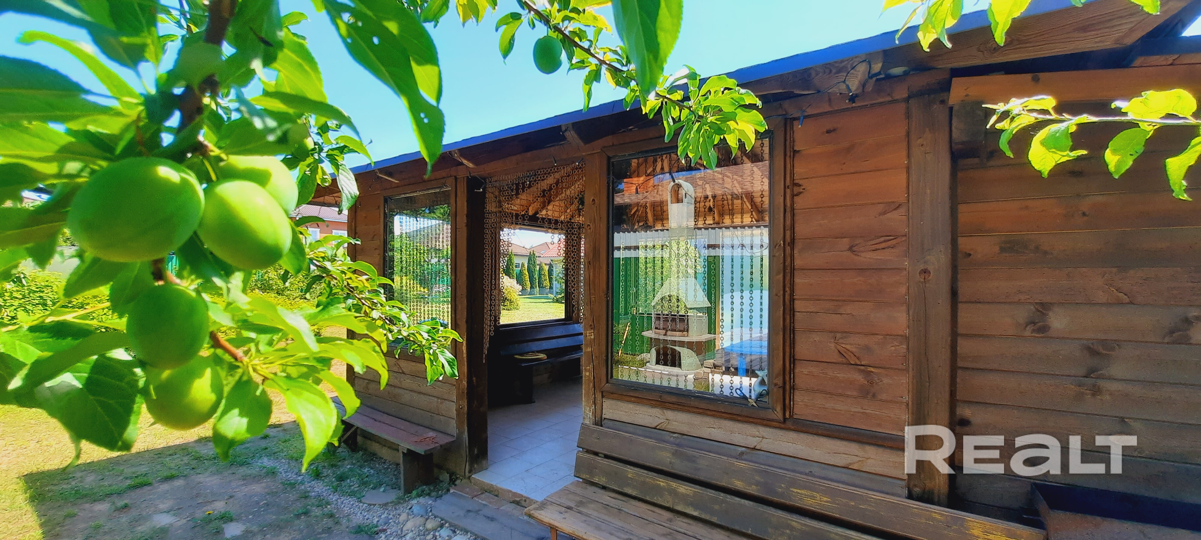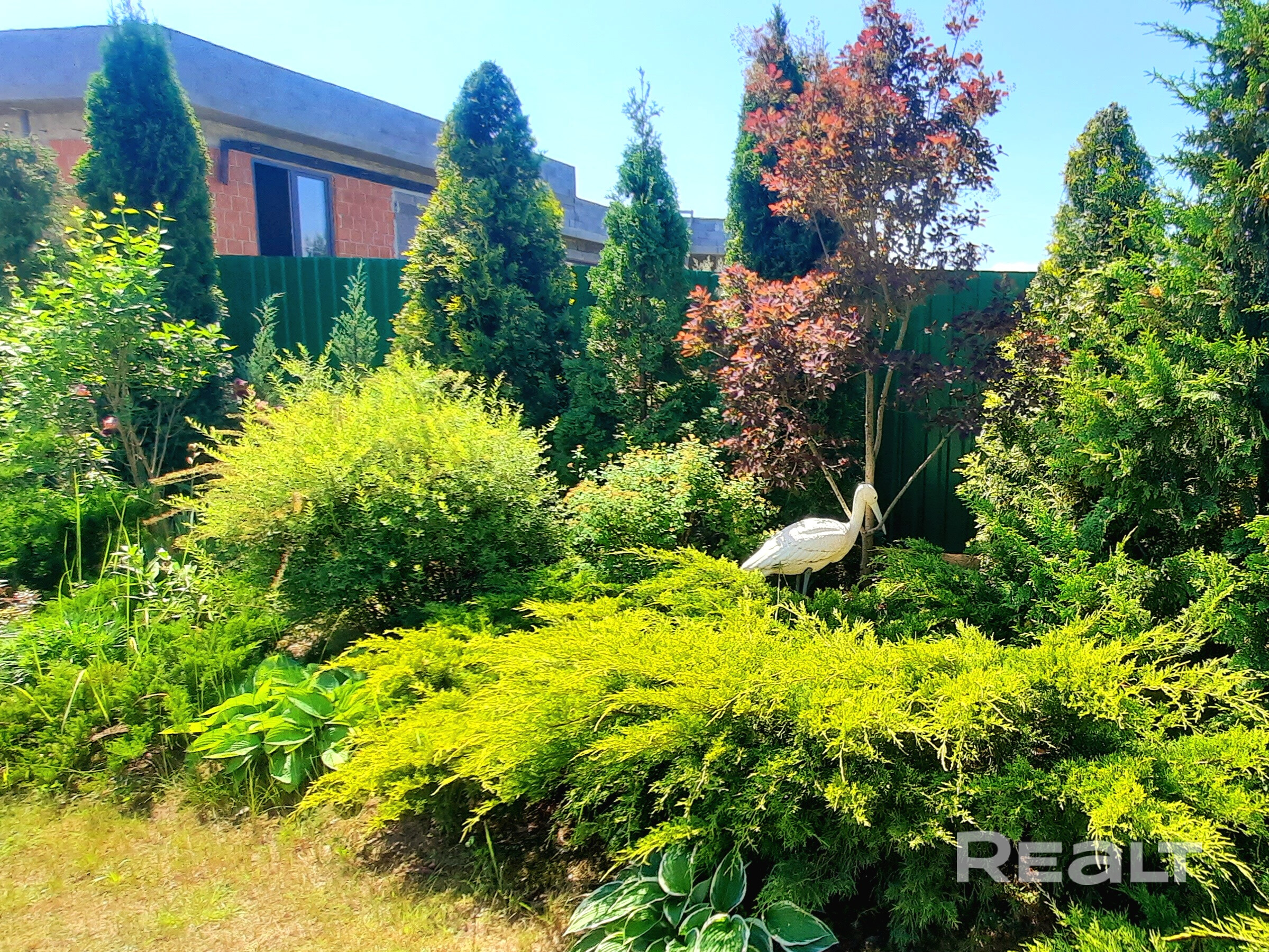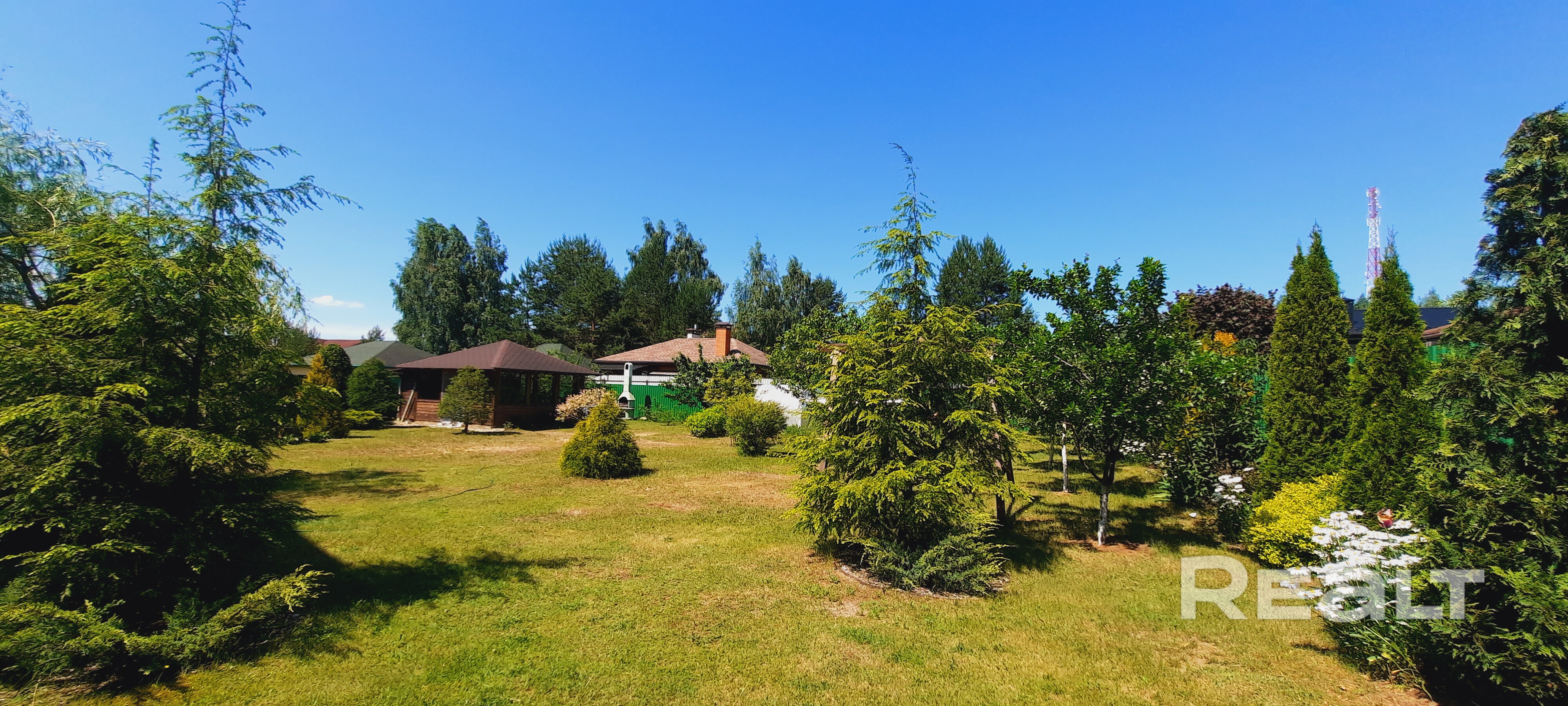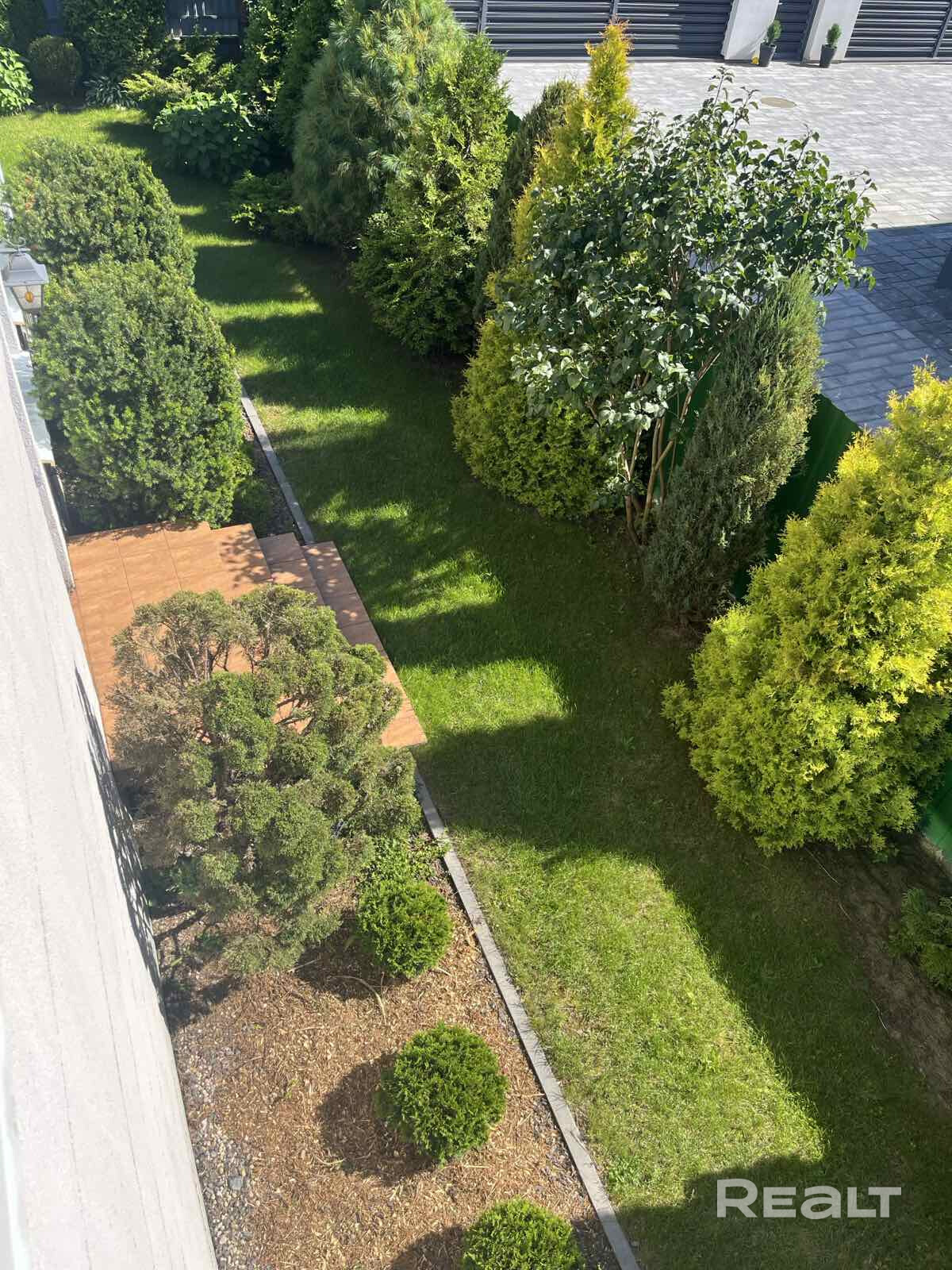 На участке высажены красивейшие редкие вечнозеленные кустарники и деревья, цветники, клумбы. Сад из плодоносящих культур (черешня, яблоня и другие). Организованы зоны отдыха для детей, шикарная натуральная беседка с печью-барбекю и в удобном месте теплица и огородничество.