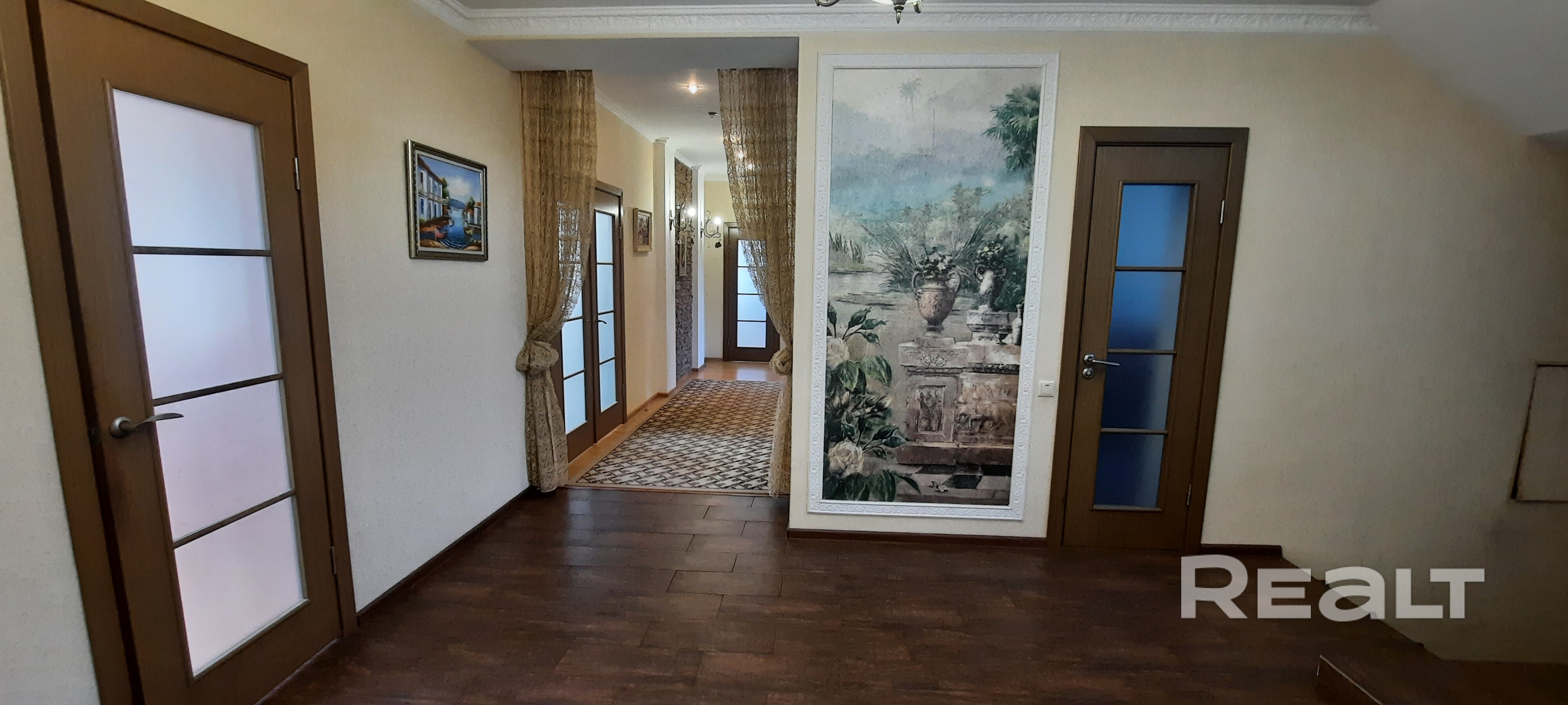 Первый этаж: большая прихожая с теплым полом. Просторные коридоры. Обустроено 2 этажа, при желании можно полноценно разместиться 2-ум семьям.