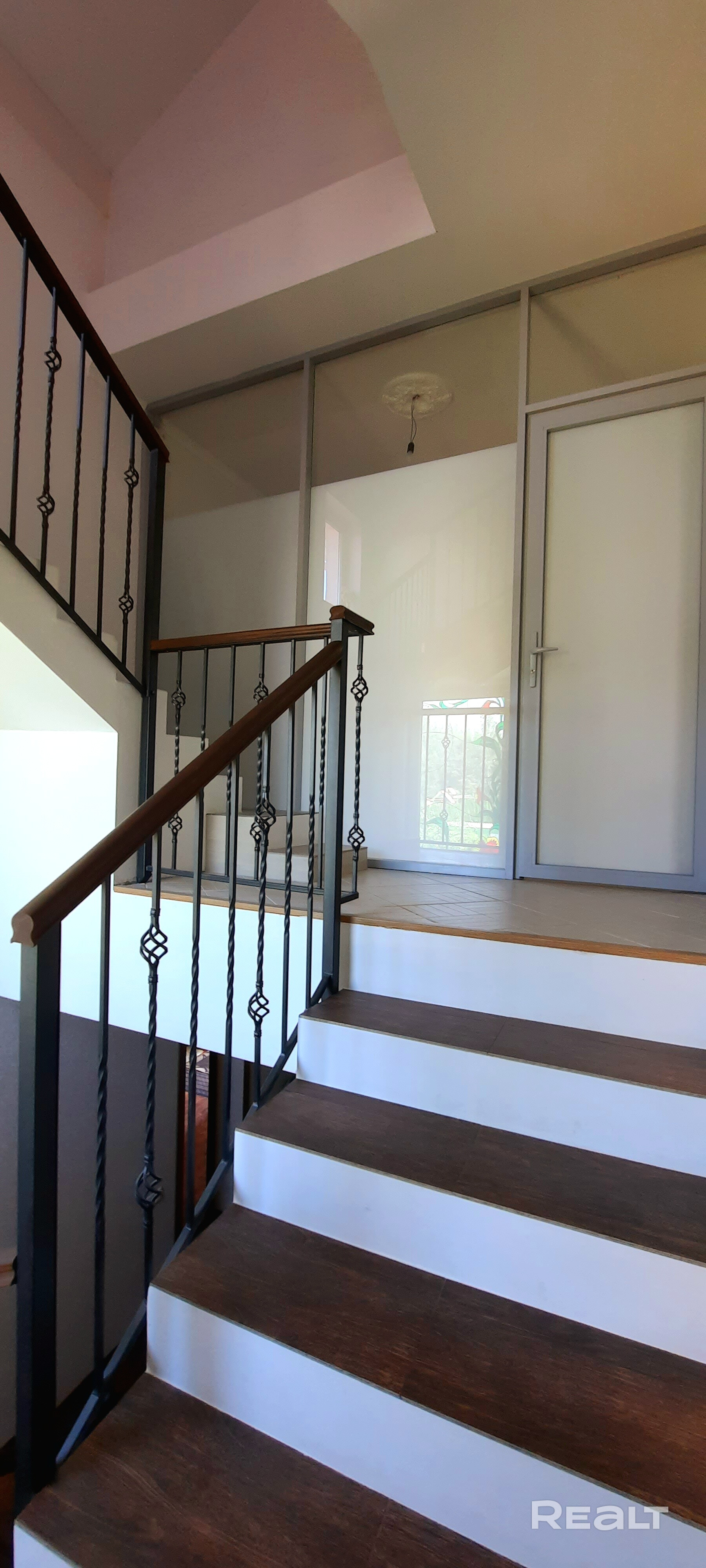 На 2-уровень установлена надежная, бетонная лестница с кованными перилами и подсветкой. На втором этаже 3 спальни и обустроенная кухня, с помощницей - посудомойкой "Bosch". И выходом на большую лоджию - террасу. С прекраснейшими видами из окна и уютным чаепитием.