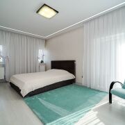Вся отделка выполнена в светлых приятных тонах. Окна в гостиной панорамные стеклопакеты ПВХ, из гостиной имеется выход на террасу.