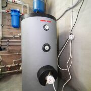 Дом со всеми коммуникациями. Отопление – электрическое, плюс твердотопливный котел. Вода холодная - центральная, есть также своя скважина, канализация - местная. Все коммуникации введены и разведены по дому.