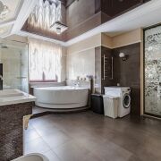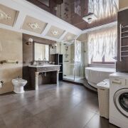 - просторная ванная покрыта итальянской плиткой. Сантехника в ванной также от Вилерой и Бох. Ванна оборудована системой циркуляции и массажа.