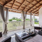 - терраса выходит на южную сторону и полностью укрыта крышей.