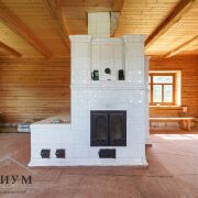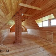 Дом полностью из натурального дерева (бревенчатый сруб, утепленный минеральной ватой и обшитый лиственницей, кровля - натуральная дранка из осины, окна - деревянные стеклопакеты). В доме многофункциональный печной комплекс (камин, плита для готовки, обогреватель, лежанка). Печь облицована керамическим изразцом. На верху просторный мансардный этаж с выходом на открытый балкон. Мансарда обшита натуральной вагонкой штиль, пол из доски, утеплен. Сделана разводка канализации для кухни и полноценной ванной комнаты с санузлом, проложена магистраль в канализационные кольца на участке. Есть ввод электричества. По улице идет газ.