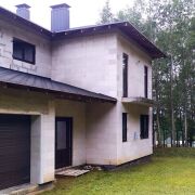 Основной дом построен из силикатных блоков "Забудова". Кровля в обоих домах из настоящей финской черепицы "Katepal Rocky". Входные двери и окна изготовлены из четырехслойного натурального дубового бруса со встроенными стеклопакетами. В оба дома проведено электричество. Проведен уличный газопровод, который полностью оплачен (действующая газовая труба в метре-двух от границы участка).