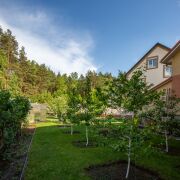 Участок 9 соток, ровный, пологий, c молодым садом, ягодными и декоративными растениями. Участок огорожен стационарным забором, и с двух сторон забором из туй высотой 3-4м.