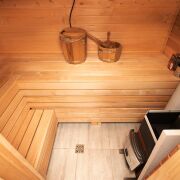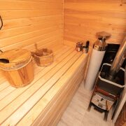 На участке сауна с комнатой отдыха и выходом на террасу
