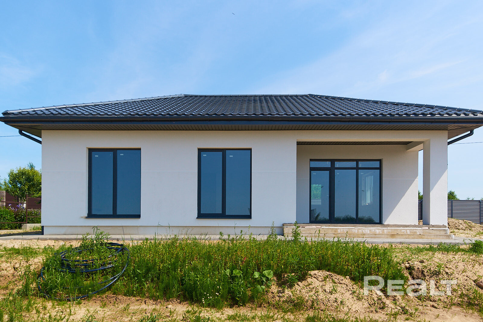 Дом блочный, 2024 года постройки, одноэтажный, продуманной планировки. В доме 3 отдельные спальни, просторная кухня гостиная, санузел, гардероб. Панорамное остекление и красивый вид на участок. Окна ПВХ. Дом под чистовую отделку. Отличный вариант для Ваших собственных дизайнерских решений.