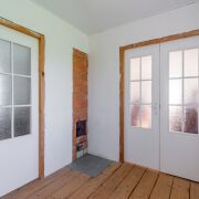 - Окна ПВХ, внутренние стены и потолок обшиты гипсокартонном.
