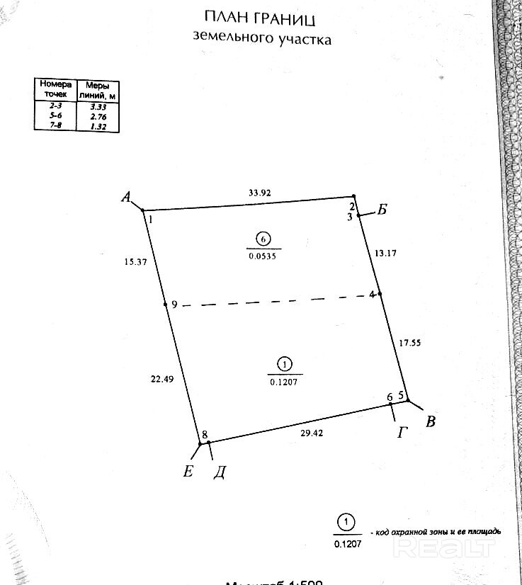 - Площадь участка