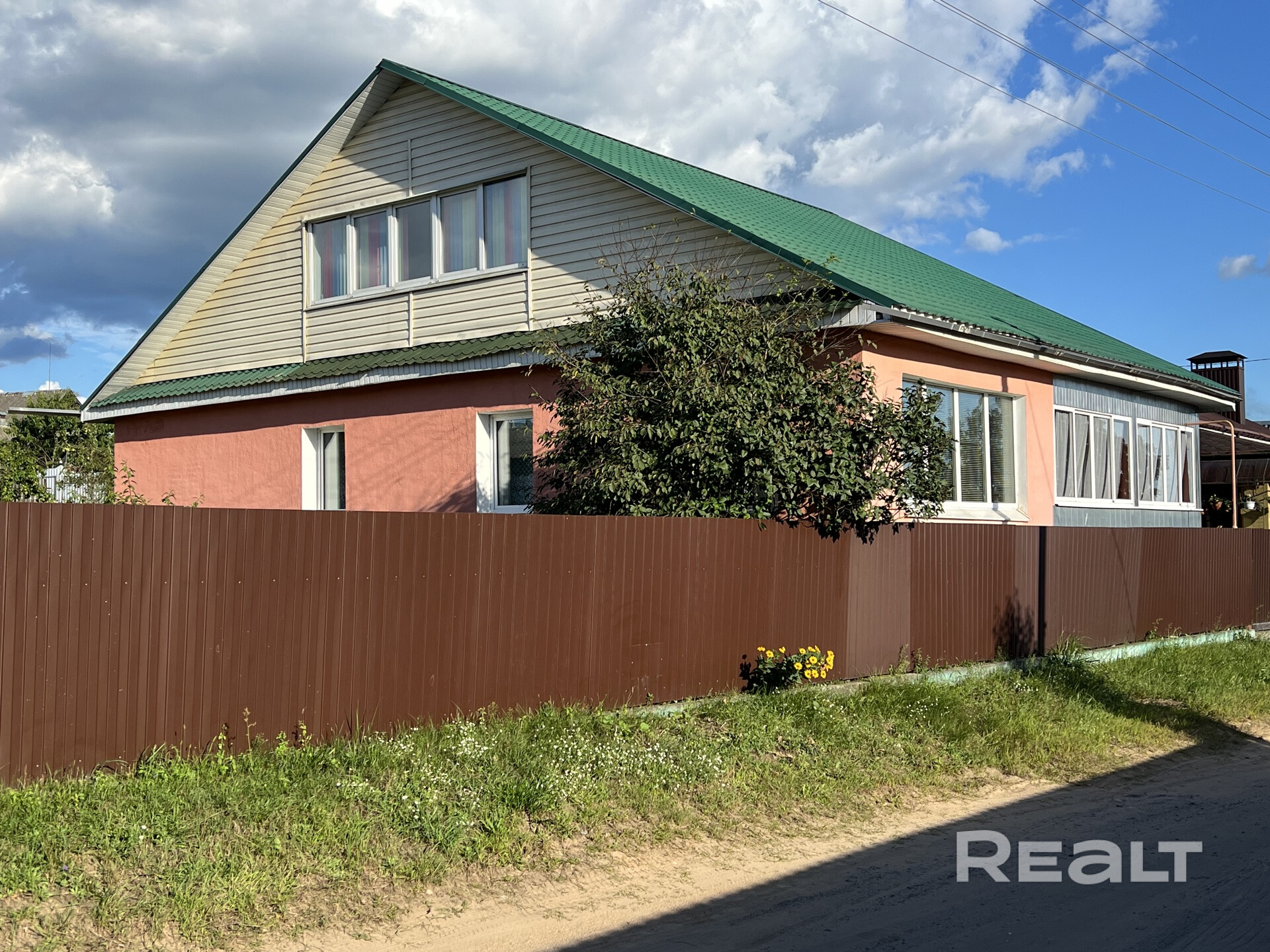Дом построен из качественных блоков, а крыша покрыта прочным металлом, что обеспечивает надежность и долговечность строения.