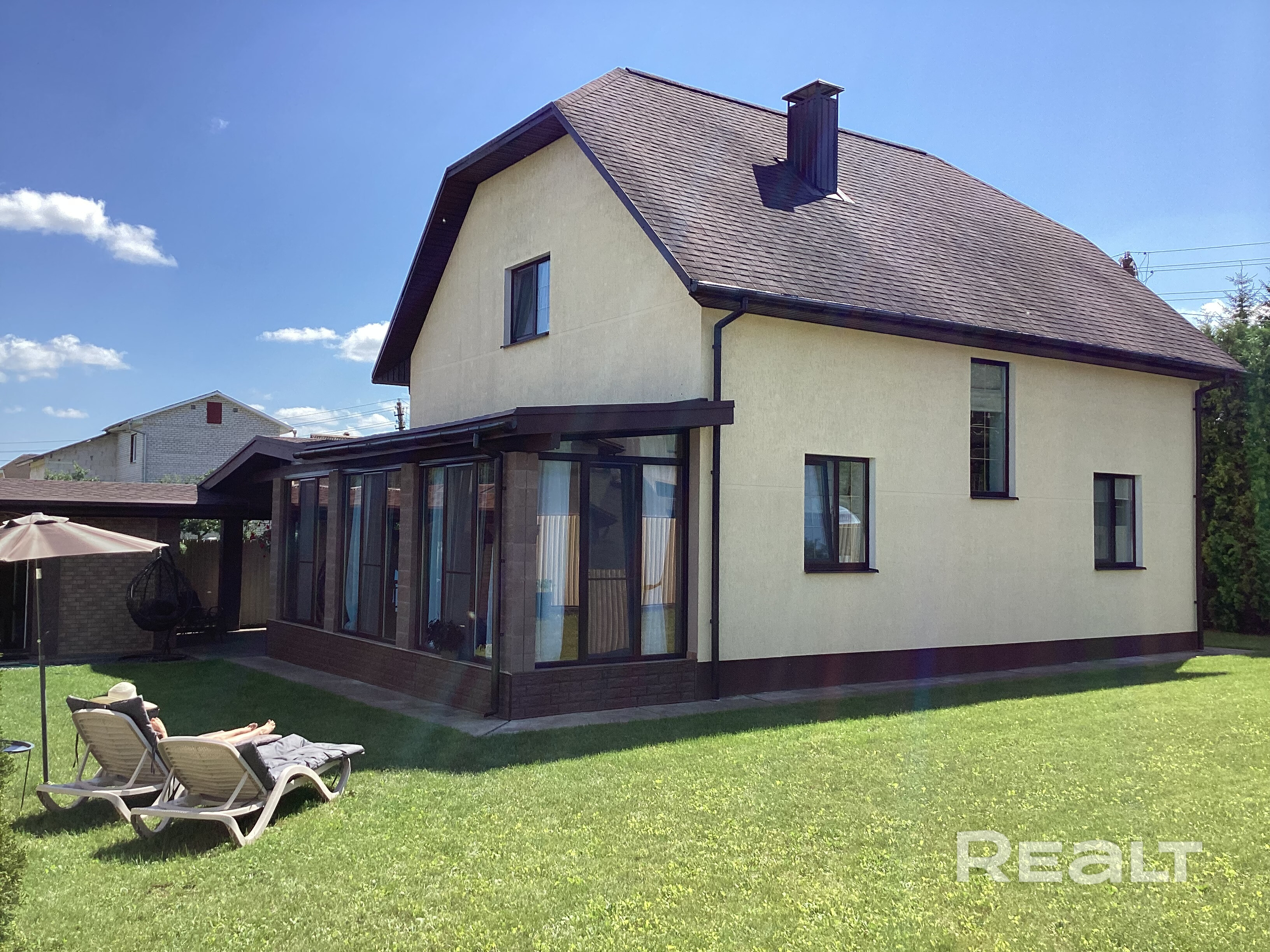 Шикарный дом для круглогодичного проживания,Дом 100% готовности продаётся с мебелью и бытовой техникой.Дом стены блок+утепление+декоративная штукатурка перекрытия ЖБ. В доме тёплые полы на кухне в коридоре и санузлах окна Salamander радиаторы Fondital лестница и портал из дуба.Участок полностью огорожен электро ворота и калитка большая стоянка для авто под навесом