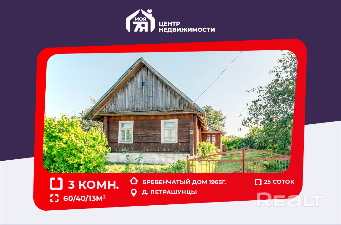 -Одноуровневый бревенчатый дом 1965 года постройки, расположенный на просторном земельном участке в 25 соток.