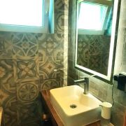 Тамбур, холодная прихожая, просторный коридор. Раздельный санузел облицован современной плиткой, полы с подогревом, установлена ванная, складная стеклянная шторка, полотенцесушитель и стильный умывальник, зеркало с подсветкой. Туалет глубокий, удобно расположен компакт-унитаз.