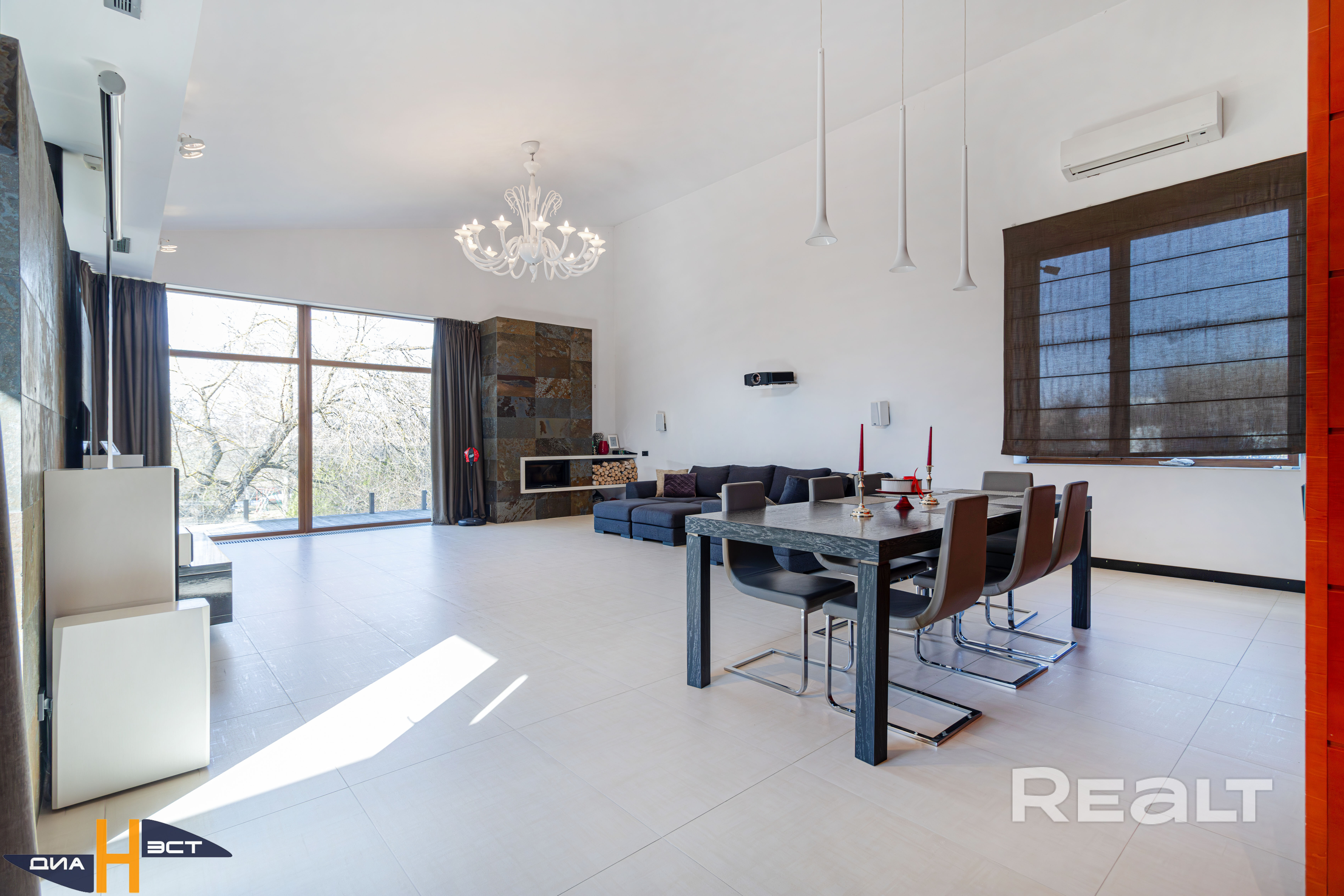 Шикарный дом, состоящий из 3 жилых комнат, гостиной, кухни, стильной террасы по периметру дома, кабинета, двух гардеробных, котельной, подсобных помещений, инвентарной, гаража, СПА-зоны. Освещенная придомовая территория.