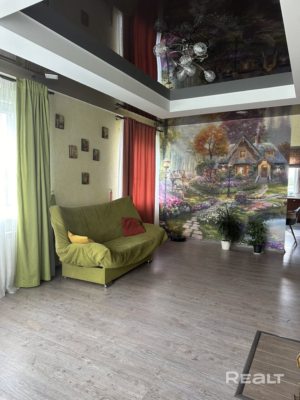 На полу ламинат, натяжные потолки, в гостиной двухуровневый. Установлены кондиционеры.