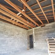 Дом построен из Керамзитбетонных блоков 400мм. Каждый третий ряд армирован. Фундамент свайно-ростверковый, сваи 6 м. Есть усиление фундамента под камин.
