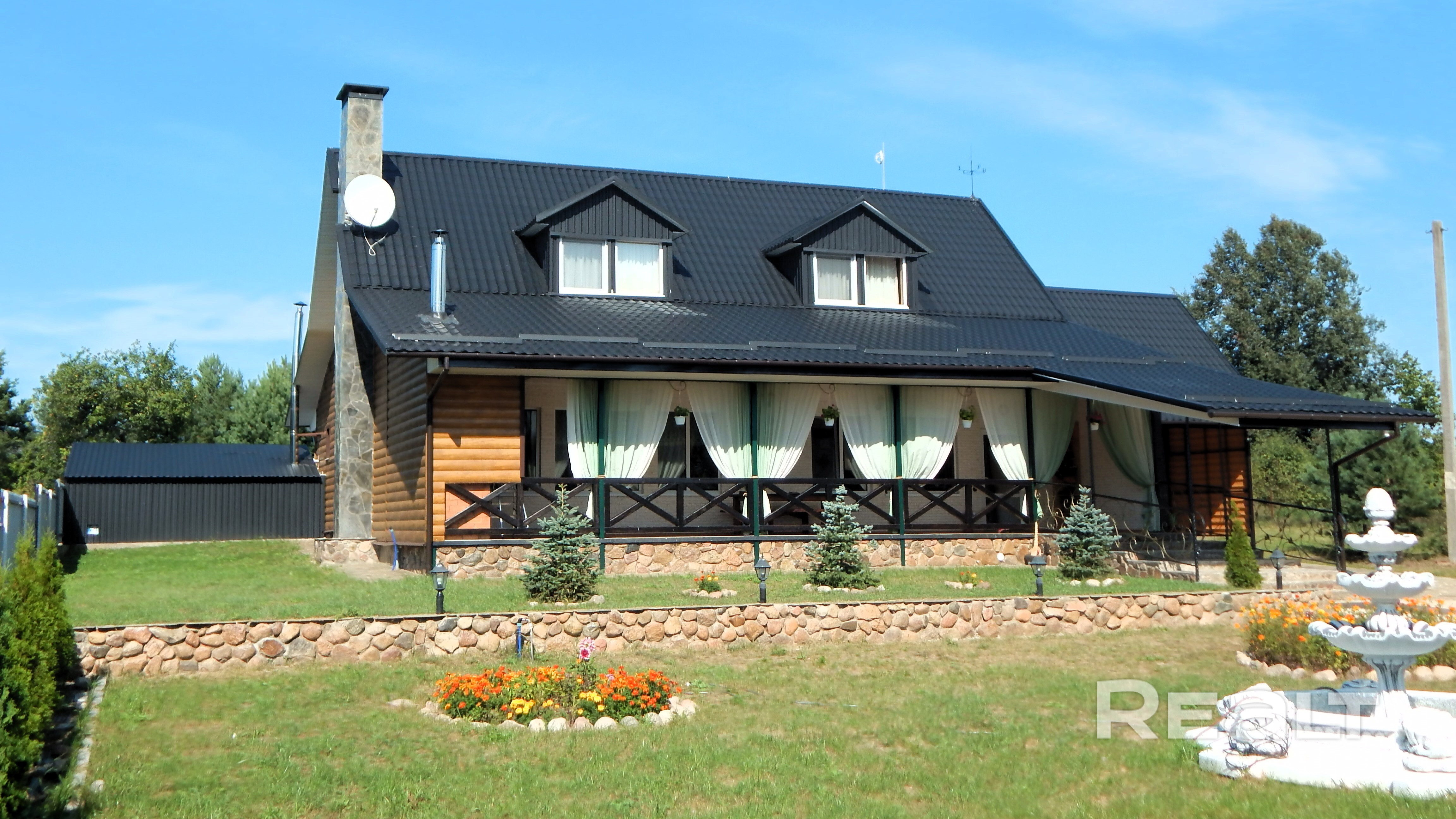 Также есть просторная терраса с камином и умывальником — идеальное место для отдыха, барбекю и встреч с друзьями.
