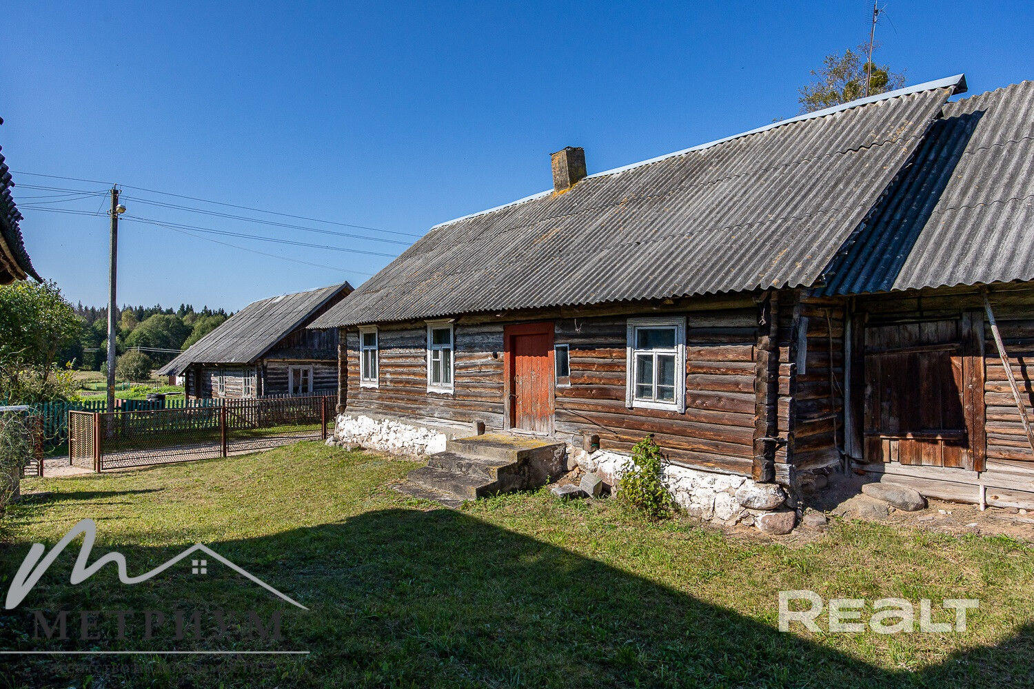 Деревянный крепкий сруб, хозпостройки. 17 соток земли. Возможна покупка иностранными гражданами.