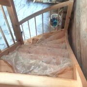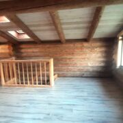 Дом из тесаных бревен, фундамент - бетонный, крыша - мягкая кровля Катепал, окна - ПВХ(цвет под дерево), полы - плитка(60*60) и ламинат. Газ - подведен к дому, электричество 220/380В, вода - кооперативная скважина, канализация местная.