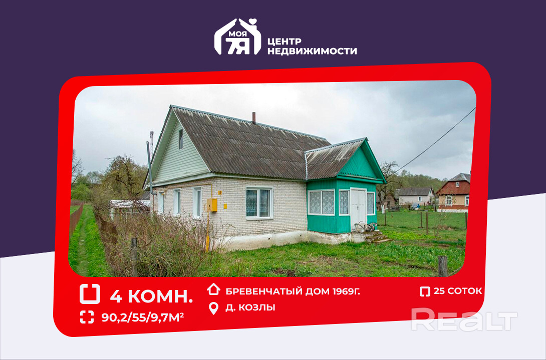 - Одноуровневую бревенчатый дом, облицованный кирпичом, построенную в 1969 году.