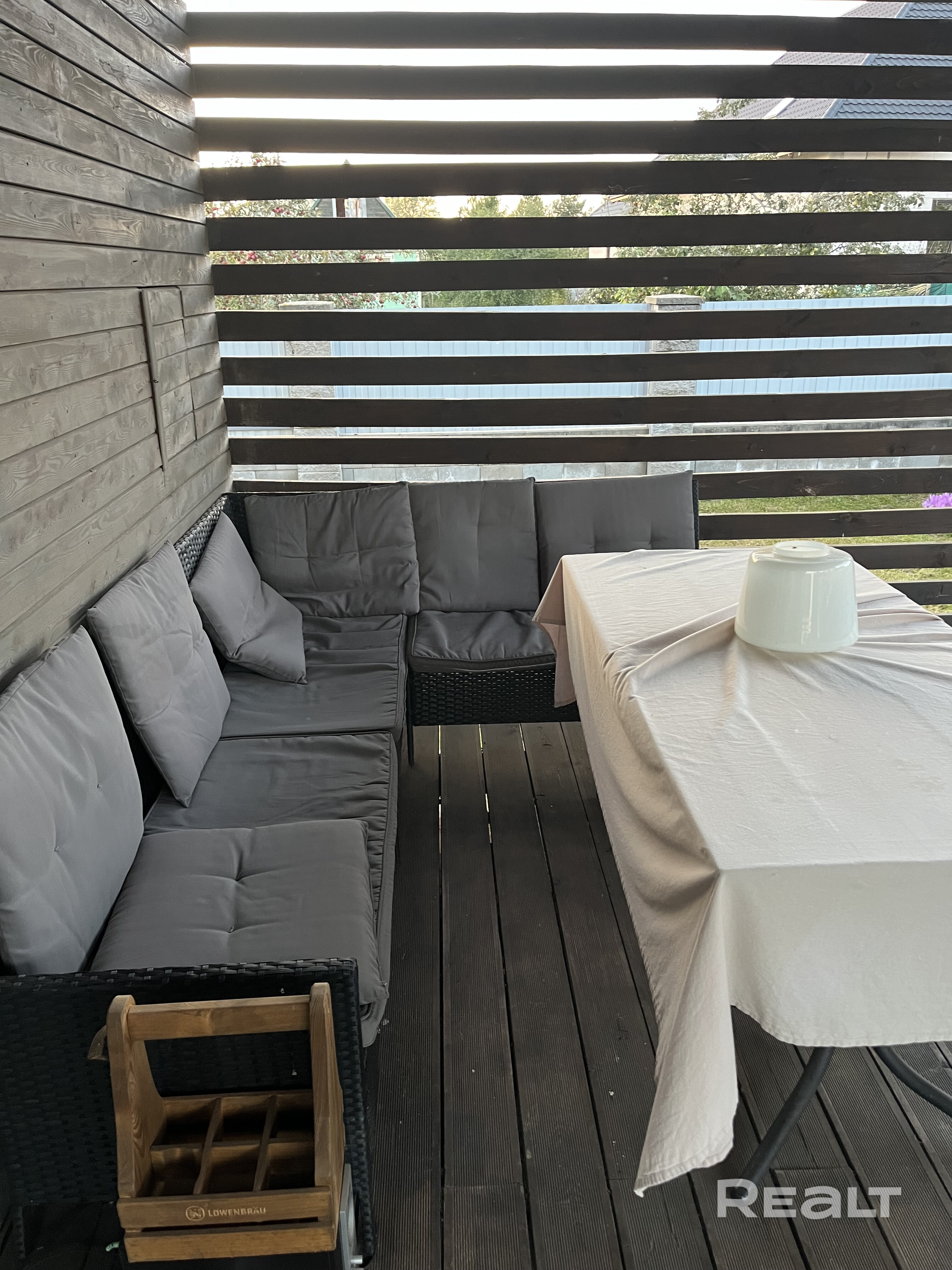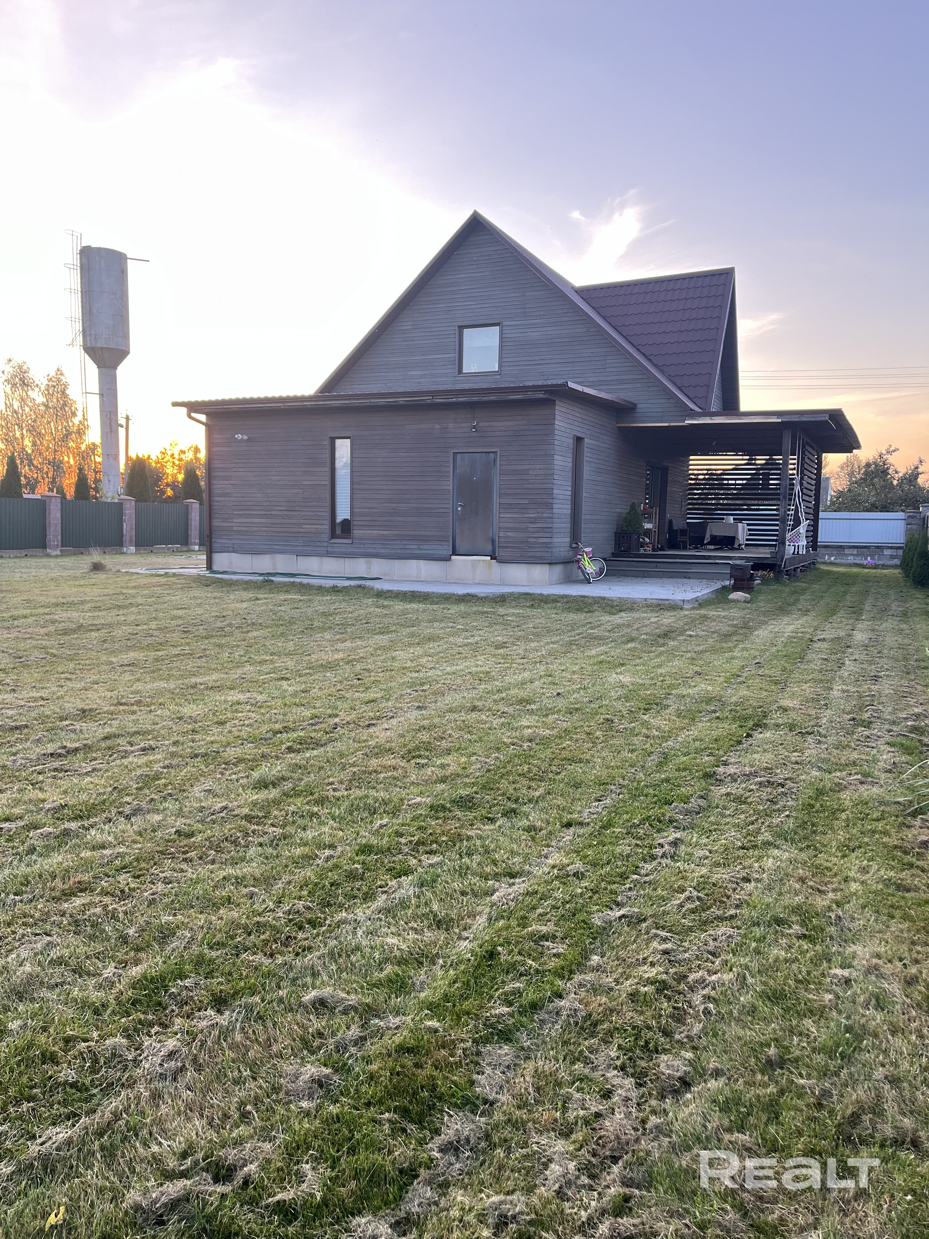 Продаётся готовый к проживанию дом с участком — 132 м² + 10 соток, Минская область, с/т Перхурово, Дзержинский р-н (18 км от МКАД). — Общая площадь дома: 132 м², жилая — 100 м², участок 10 соток. Риелтбай — Дом построен в 2020 году, 100 % — Новостройка, отделка «под ключ», выполнена евроотделка, есть мебель. Риелтбай — Отопление — газ, вода — собственная скважина, электричество — 380 В. Риелтбай — Планировка: кухня-гостиная 50 м², прихожая 16 м², 2 спальни по 15 м², санузел 7 м², котельная