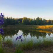 Имеется собственный пруд 20 х 30 метров, заселенный золотыми рыбками и обеспечивающий круглогодичную рыбалку. Водоем окружен собственным «домашним лесом» из хвойных и лиственных деревьев.