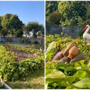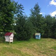 Большое количество насаждений: плодовые деревья и сортовые ягодные кустарники, декоративные растения, разнообразие цветов. Установлены ульи.