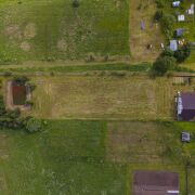 С одной стороны граничит с соседним заселенным участком, с другой пролегает проселочная дорога. Территория ровная, засеяна газонной травой.
