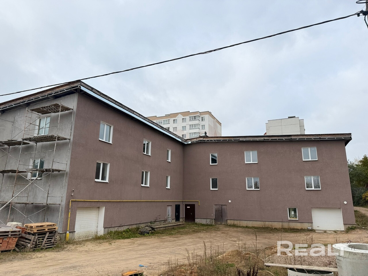 газом. Фундамент и фасад утеплён и покрашен. Крыша утеплена. По всему зданию оштукатурены стены, разведено отопление, электрика, водоснабжение.