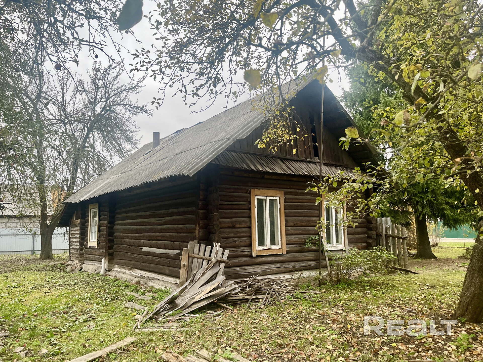 Дом из сруба, крыша - шифер. Свет в доме, отопление печное, на участке