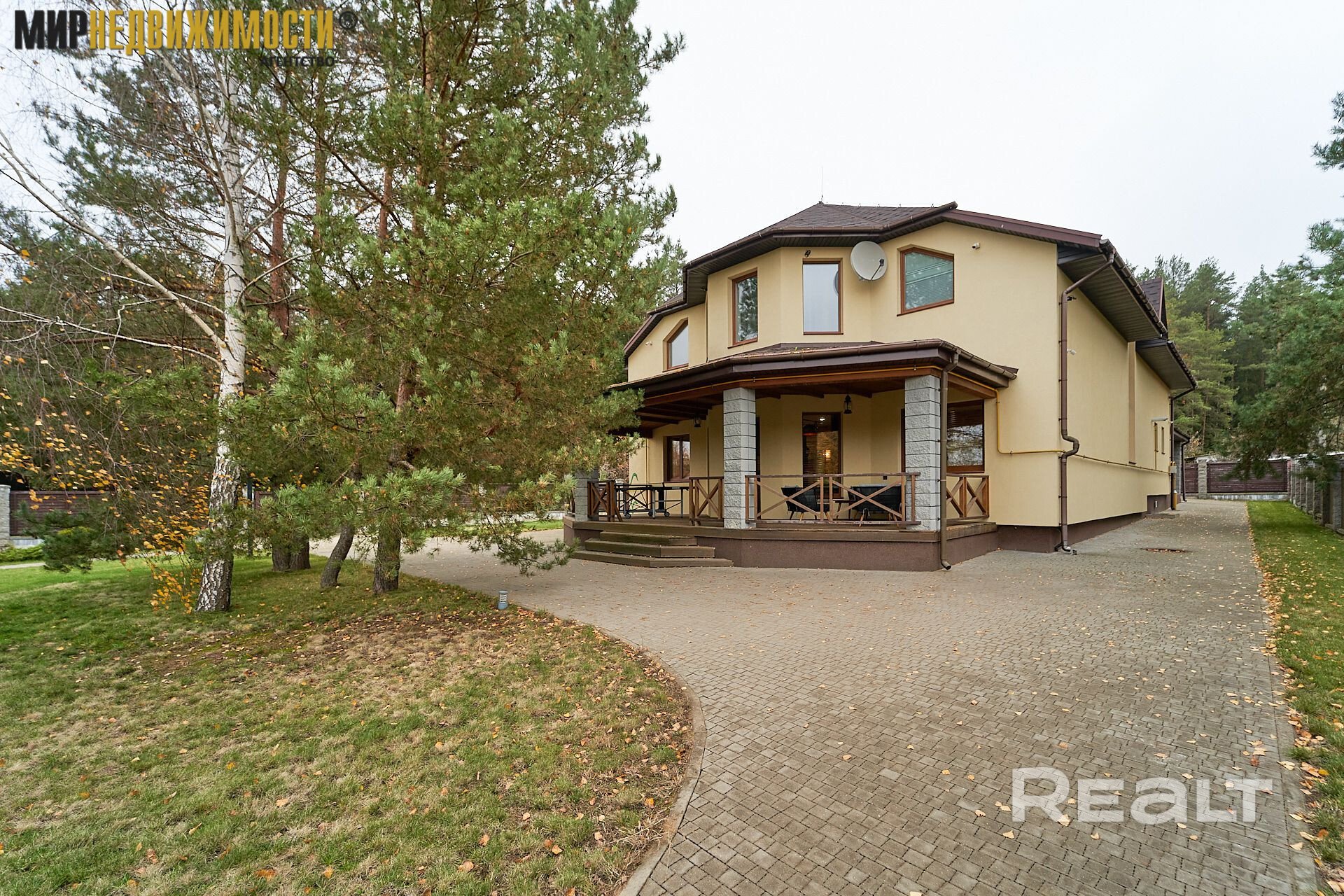 Участок 15 соток, сохранены сосны, берёзы, высажены декоративные растения. Широкие дорожки их плитки, освещение на участке, забор из лиственницы. Баскетбольное кольцо, теннисный стол.