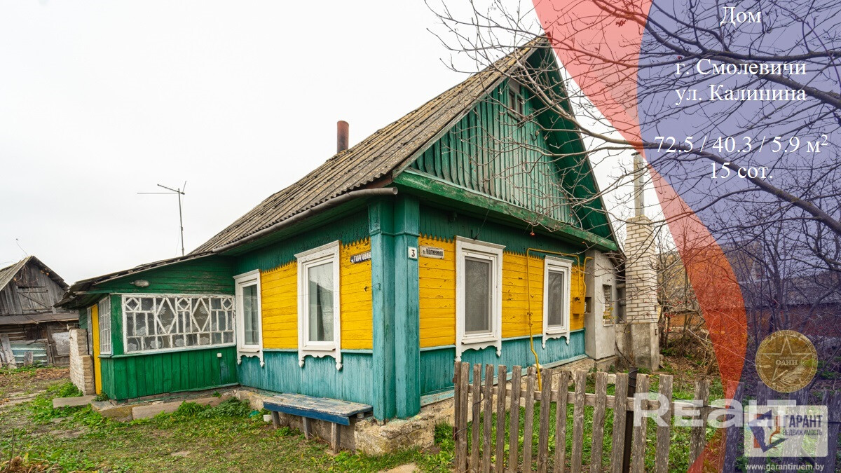 Продается жилой дом, расположенный в г. Смолевичи по ул. Калинина, Московское направление, в 32 км от г. Минска и 25 минут на машине.