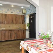Кухня оборудована холодильником, отдельным морозильником Beko. кухонными ящиками, шкафчиками (все остается покупателю). Между кухней и столовой предусмотрено пространство под барную стойку. Имеется бойлер.
