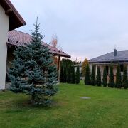 На участке туи, декоративные деревья и кустарники.