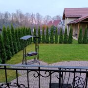 Участок 15 соток в частной собственности, благоустроен и ухожен. На открытой террасе вы можете приготовить свежие продукты и насладиться природой. По периметру установлен забор из металлопрофиля на ленточном фундаменте и декоративных бетонных плит. Вход на территорию через калитку. По краям участка расположены въездные ворота.