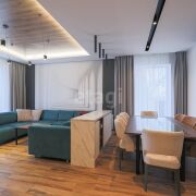 В отделке использованы высококачественные материалы европейских производителей. Каждый элемент интерьера выполнен с безупречным вкусом и любовью к деталям. Напольное покрытие первого этажа плитка, тёплый пол. На втором этаже паркетная доска. Стены выровнены и окрашены. Высота помещений первого этажа 2.99м, второго 2.69м.
