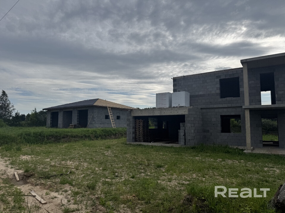 Продается недостроенный двухэтажный дом 220 м.кв. с гаражом 72 м.кв. на участке в 25 соток в д. Самохваловичи. Удобное расположение. (виден с трассы; первый, сразу на возвышенности). Строительство осуществлялось по проекту (прилагается), качественно. Подведено электричество (установлен счетчик), газ (к дому); на участке вода (скважина); к участку подведено оптоволокно. Прямая продажа. Агентств просьба не беспокоить, но индивидуальное посредничество поощряется.